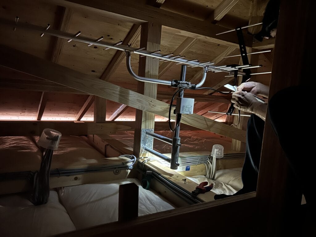 屋根裏取り付け工事にもキャンパーン価格で対応可能なハロー電気のアンテナ取り付け工事は、スピード・価格・品質の全てでお客様に満足いただけるサービスを目指しています。スピード・価格・品質すべてで最適なアンテナ設置をお約束します!